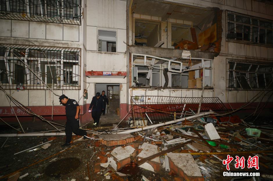 8月18日凌晨,山西省长治市高新区景山花园小区爆炸现场一片狼藉。8月17日1时30分许,该小区一住户家中发生爆炸,爆炸冲击波震碎方圆百米的房屋门窗玻璃,事故初步认定为由燃气爆炸引起。截至17日20时,事故已造成7人死亡,4人受伤。事故确切原因正在进一步核查。中新社发 韦亮 摄