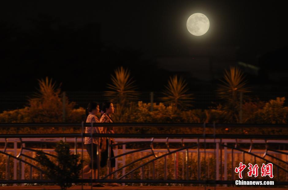 8月10日晚,一轮圆月亮相深圳龙岗区夜空。8月10日晚到11日凌晨,年度最大最圆的“超级月亮”将在空中上演。11日凌晨1点43分,月球运行到近地点,距离地球仅35.6896万公里。 中新社发 杨华峰 摄