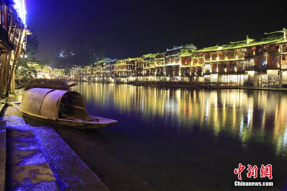 8月16日晚,在或强或弱、或冷或暖的色调里,湖南凤凰古城的“山、水、城、人、文”形成美仑美奂的“夜凤凰”,让梦回故乡的意境与韵律随着河水静静流淌。在湖南凤凰县超历史记录“7.15”洪灾一个月后,凤凰古城风景名胜区正式对外开放,而包括一江两带、三桥四山体等内容的凤凰古城沱江风光带夜景亮化工程也顺利重启。黄晓军 摄