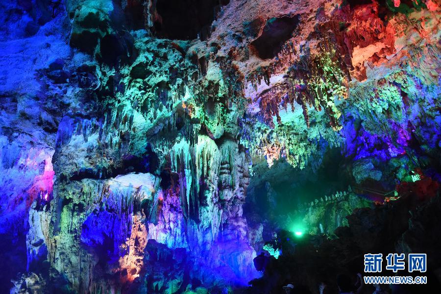 这是8月3日拍摄的广西南宁市武鸣县伊岭岩的钟乳石。位于广西南宁市武鸣县的伊岭岩,是我国岭南地区一座典型喀斯特岩溶洞,壮语称为“敢宫”,大意是“宫殿一样美丽的岩洞”。据地质学家推断,伊岭岩形成于100万年前。整个溶洞群面积2.4万平方米,洞内钟乳密布,每年都有众多中外游客来此观光游览,领略“岭南地宫”的独特魅力。新华社记者 陆波岸 摄