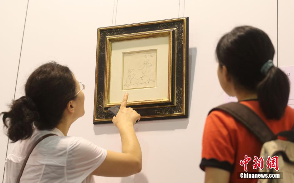 8月19日,观众被展出的塞尔维亚艺术家凡斯娜·S·潘特里克的雕塑作品《水球小子》吸引。当日,南京青奥会美术大展在南京国际博览中心对外开放。据介绍,本次大展汇集了79个国家的艺术作品,包括中国画、油画、版画、瓷器、雕塑等500多件作品,艺术价值总估价高达百亿元。中新社发 泱波 摄