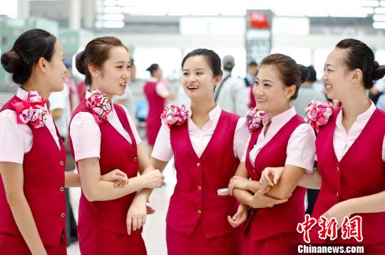 图为训练间隙,乘务员在交流心得。张学东 摄
