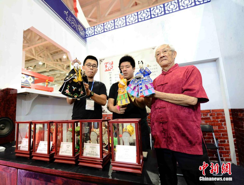 9月1日台湾“非遗”传承人携台湾“非遗”项目参加在山东潍坊举办的“海峡两岸非物质文化遗产联展”。台湾漆工艺、篮胎竹编工艺、木雕凿花工艺、古典布袋戏帽盔道具制作工艺、锡工艺、赛德克族群编织工艺、春仔花工艺、中国结工艺等八大项传统工艺精品参展。台湾“非遗”传承人现场秀绝活。图为,台湾竹编非遗传承人李荣烈现场制作。
