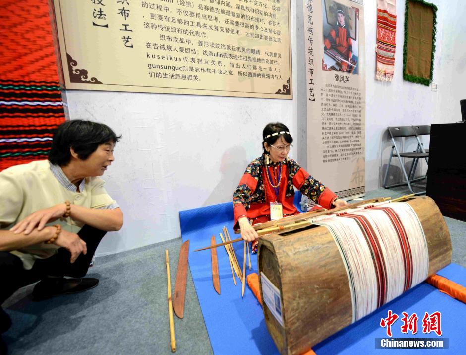 9月1日台湾“非遗”传承人携台湾“非遗”项目参加在山东潍坊举办的“海峡两岸非物质文化遗产联展”。台湾漆工艺、篮胎竹编工艺、木雕凿花工艺、古典布袋戏帽盔道具制作工艺、锡工艺、赛德克族群编织工艺、春仔花工艺、中国结工艺等八大项传统工艺精品参展。台湾“非遗”传承人现场秀绝活。图为,台湾竹编非遗传承人李荣烈现场制作。