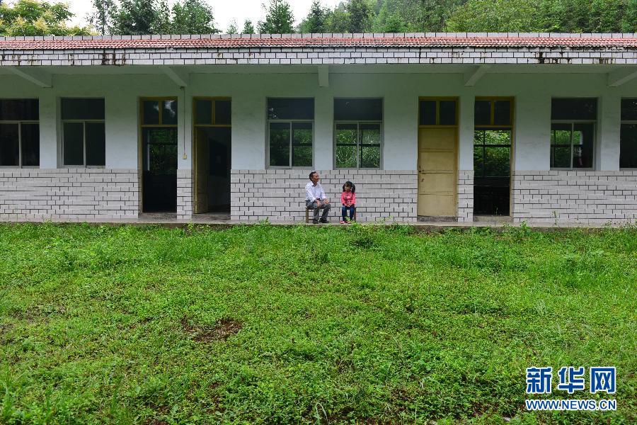 9月1日,课间时间,湖北恩施龙凤镇大龙潭村杉树湾教学点的谢世魁老师和学生刘欣怡在教室外休息。 图片来源:新华网