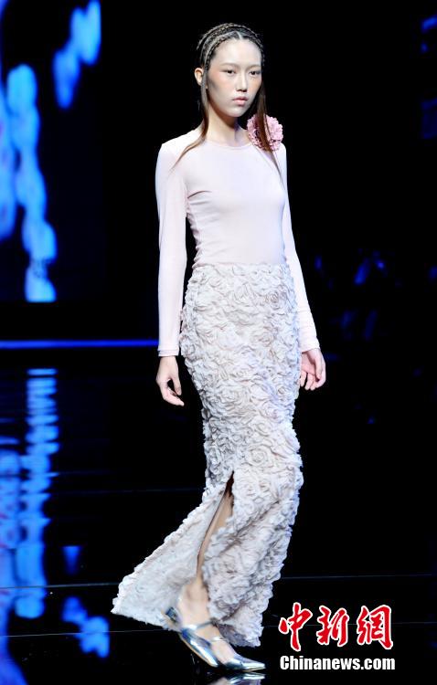 8月29日,香港服装学院优秀学员宋庆庆之“倾心夺慕——Poem颂一2015春夏主题发布会”在广东时装周主会场广州轻纺交易园国际时尚发布中心举行。服装设计构想:由内而外的衷爱分别以“倾、夺、心、慕”四个系列表达。图为模特现场演绎香港服装学院优秀学员宋庆庆“Poem颂一”作品。中新社发 刘卫勇 摄