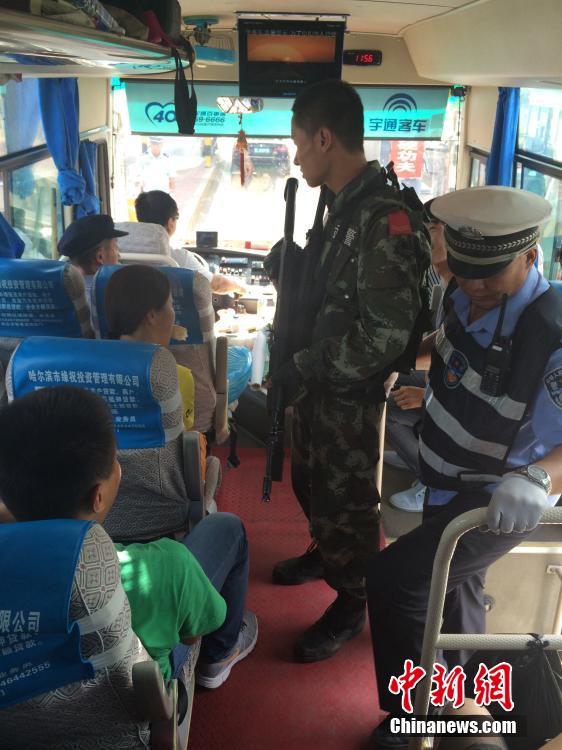 9月2日4时40分许,在黑龙江延寿县公安局看守所,3名在押犯人将1名当班狱警杀死后逃走。目前,哈尔滨警方已经下发协查通报,部署警力进行武装巡逻和搜捕。图为黑龙江延寿县和尚志市的出城车辆正在接受检查。中新社发 王舒 摄