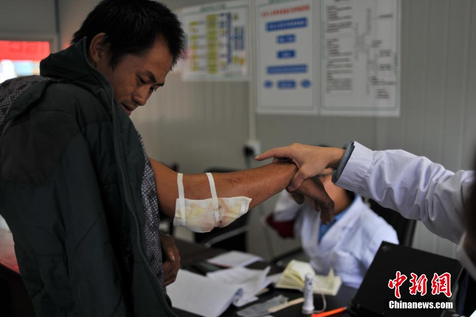9月2日,云南鲁甸龙头山镇,当地民众在新建的板房医院内看病,据医生介绍,受灾民众到这里看病和使用捐赠药品是免费的。中新社发 任东 摄