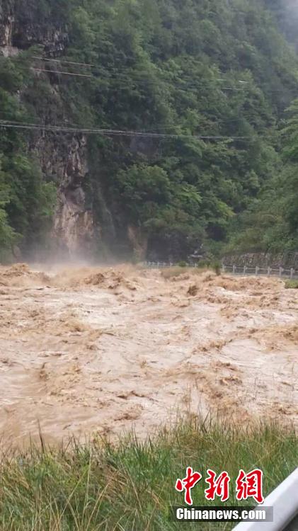 8月31日至9月1日,鄂西南、鄂东北局部暴雨、大暴雨,鄂西北、江汉平原局部大到暴雨。神农架,宜昌夷陵、秭归等14个县市区遭暴雨袭击,局地强降雨引发山洪、滑坡、泥石流等多种自然灾害。兴山、巴东、宣恩和神农架林区的151条(次)公路被冲断,倒塌房屋177间,近300人处于滑坡和泥石流包围险境中。目前神农架林区、兴山县等地已启动防汛三级、四级应急响应。图为神农架沿209国道红坪一带河水暴涨。陈为民 摄