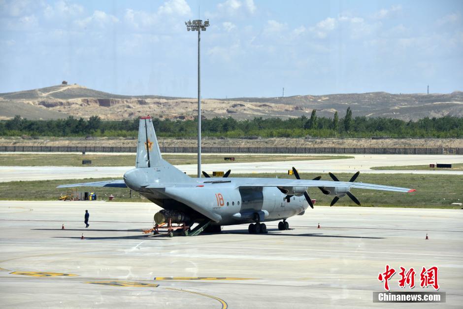 9月2日,一架哈萨克斯坦军用运输机停在银川河东机场。据了解,8月30日哈萨克斯坦空军1架图134运输机、4架苏27战斗机、1架安72运输机在参加“和平使命——2014”联合军演后回撤期间,因其中1架苏27飞机引擎故障,按照联合军演应急预案,紧急迫降至银川河东机场。迫降后,经检查该架飞机不能继续飞行,留在银川河东机场进行维修,该编队另外5架飞机已顺利返航。中新社发 骆云飞 摄