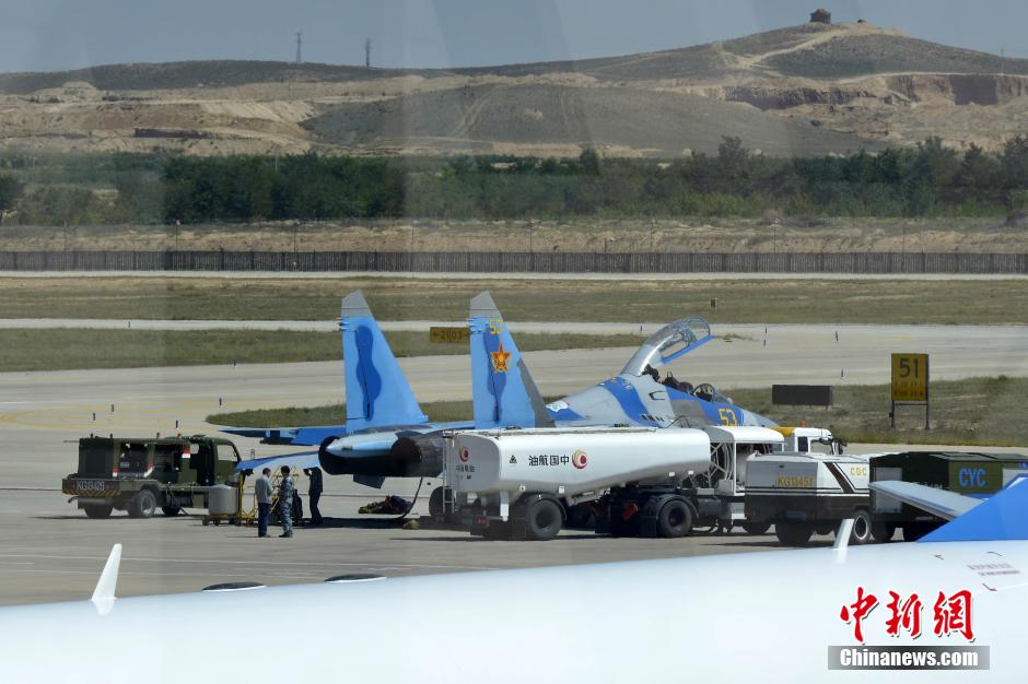 9月2日,一架哈萨克斯坦军用运输机停在银川河东机场。据了解,8月30日哈萨克斯坦空军1架图134运输机、4架苏27战斗机、1架安72运输机在参加“和平使命——2014”联合军演后回撤期间,因其中1架苏27飞机引擎故障,按照联合军演应急预案,紧急迫降至银川河东机场。迫降后,经检查该架飞机不能继续飞行,留在银川河东机场进行维修,该编队另外5架飞机已顺利返航。中新社发 骆云飞 摄