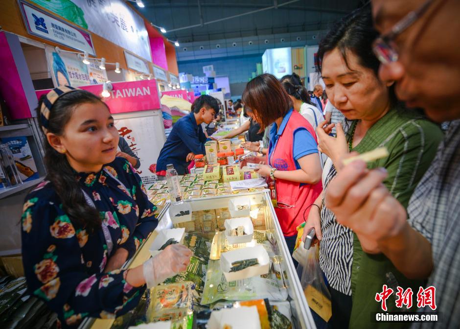 9月2日,第四届中国—亚欧博览会在乌鲁木齐的新疆国际博览中心如火如荼的进行中,新疆财经学院大三学生维吾尔族姑娘娜扎开提在台湾馆内推销美味的台湾小吃,赚取学费。中新社发 刘新 摄