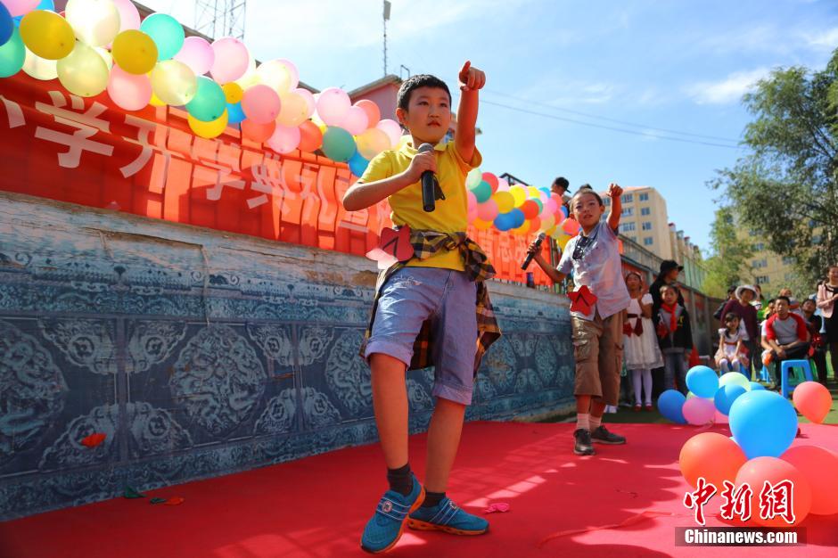 9月2日,青海省西宁市劳动路小学上演校园好声音。当日,西宁市各中小学迎来秋季开学第二天,为了培养学生学习兴趣,西宁市劳动路小学和前营街小学一改以往“领导讲,学生听”呆板的开学典礼模式,以歌唱的形式角逐校园好声音,迎接新学期的到来。罗云鹏 摄