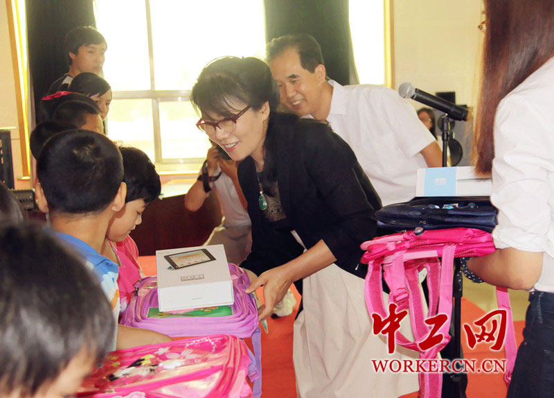 自2014年1月开始新世纪服装商贸城董事长薄成书带领新世纪服装商贸城与丰台区总工会、长辛店镇党委共同为贫困家庭的孩子们制定了“助学成长计划”,新世纪服装商贸城将持续资助这些困难家庭的孩子从幼儿园到完成学业,让他们成长的道路上一直有温馨相伴。捐助活动期间,当薄成书看到孩子们给她写的感谢信后,发现其中有两户特别困难,现场又向两家特困家庭各捐5000元钱。中工网记者 葛姗 摄