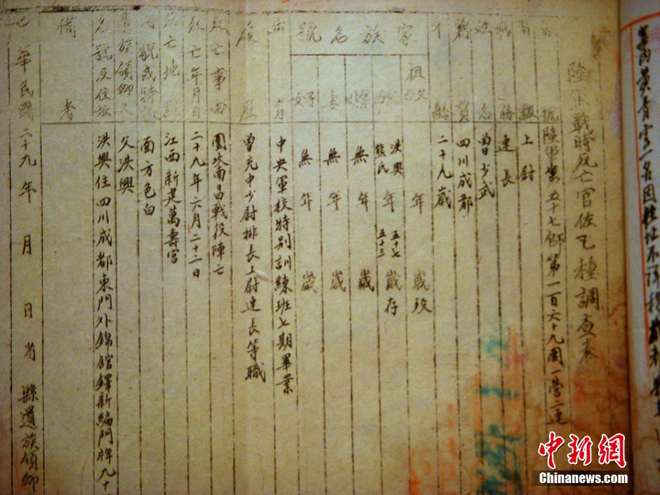 图为成都市档案馆内保存的抗战牺牲将士阵亡通知书。成都市档案馆提供