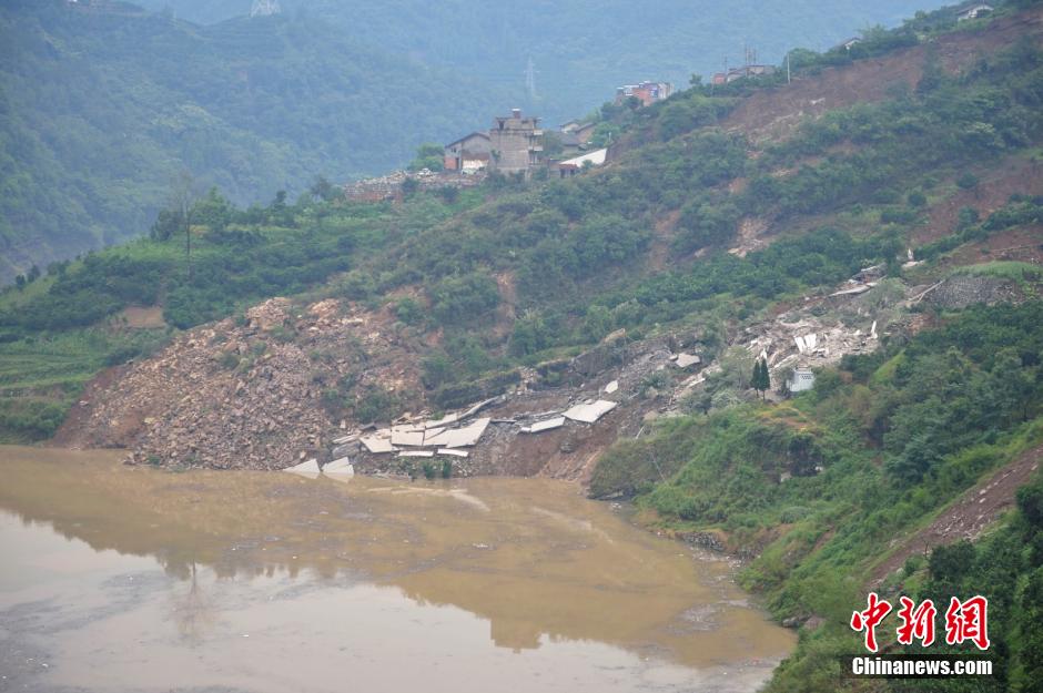 图为滑坡后大岭电站被埋 。雷勇 摄