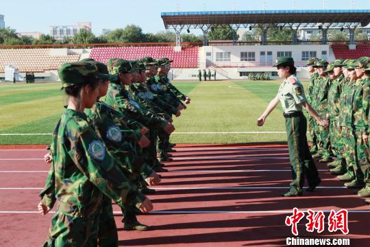 9月4日,是南开大学2014级新生军训第一天,今年的学生军训涉及22个学院,参训学生3300名左右。女教官“温柔亮相”。任永华 摄