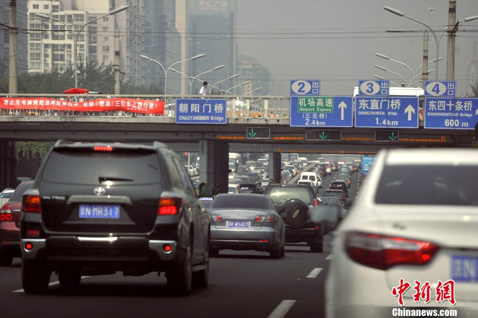 9月5日,中秋节假期前最后一个工作日,北京全市路网陷入严重拥堵状态。据交通部门预测,晚高峰将提前,并出现明显的节前出行特征,即白天路网持续处于拥堵状态。下午由于部分单位可能错峰下班,预计15时起全路网就将达到严重拥堵状态,恢复畅通或将延至19时以后。中新网记者 金硕 摄