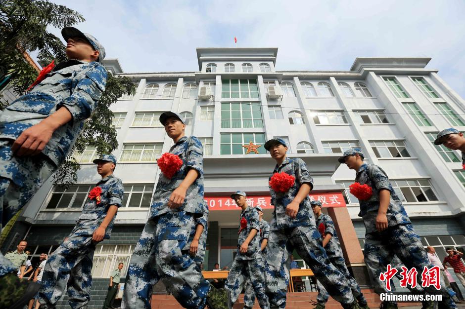9月5日,在广西柳州市融安县长安镇立新街,当地腰鼓队员夹道欢送新战士赴军营。当日,融安县举行2014年新兵入伍欢送仪式,首批46名新战士带着家乡亲人的祝福和嘱托,启程赴军营为祖国国防事业奉献自己的青春力量。据悉,今日全国各地新兵开始启运,新兵开始奔赴各地军营。谭凯兴 摄