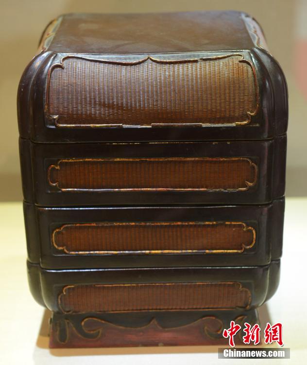 9月5日,“海丝非遗系列展——漆缘”展在福建省非遗博览苑开展。近百件明清时期及闽台现当代漆艺精品亮相,展现福州悠久的漆艺历史。图为民国时期《竹制四层漆盒》。刘可耕 摄