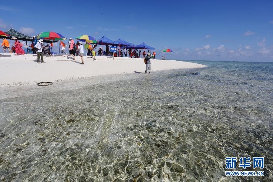 9月3日,游客在西沙原生态岛屿银屿岛上游览。 9月3日,西沙迎来9月2日三亚至西沙旅游航线首航的首批200余名游客,游客们在西沙参加沙滩排球、潜水、海钓等活动,充分感受西沙海洋旅游的魅力。新华社发