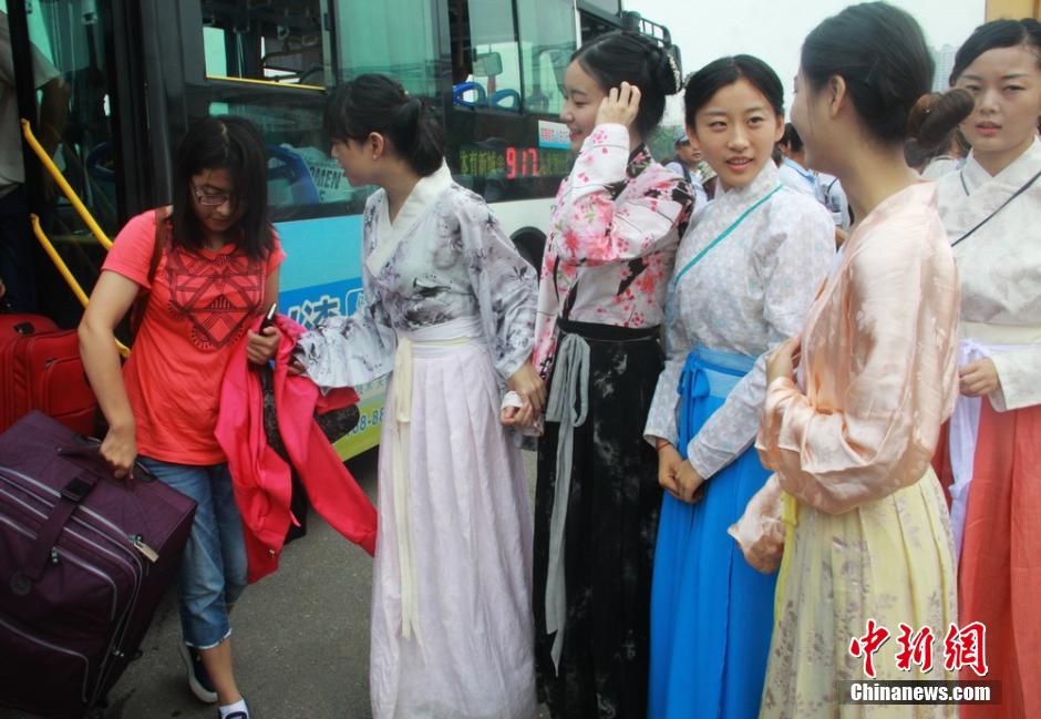 目前,中国高校正迎来“开学季”。9月6日,湖南中医药大学的学子身着汉服迎接来自全国各地的新生,用这种别具一格的方式让这座以悠久中医文化见长的高校充满新意。唐小晴 摄