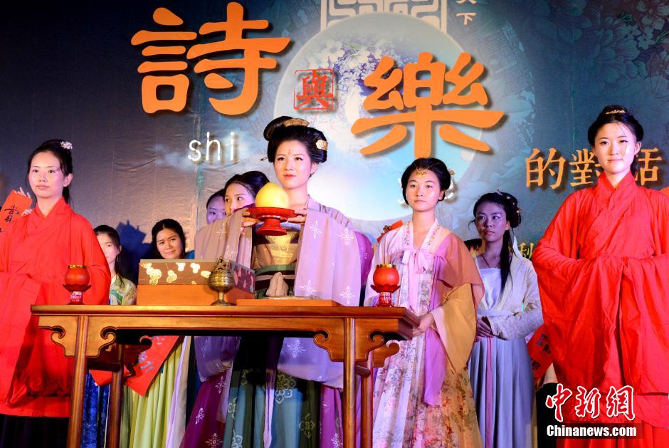 9月7日晚,近20位福建汉服少女在福州古街按传统礼仪举行中秋祭月仪式,拜月祈福。据介绍,中秋节源自先人的祭月活动,它是华夏先人祭月习俗的遗存和衍生。早在春秋时代,帝王就已开始祭月、拜月了。后来贵族官吏和文人学士也相继仿效,逐步传到民间。刘可耕 摄