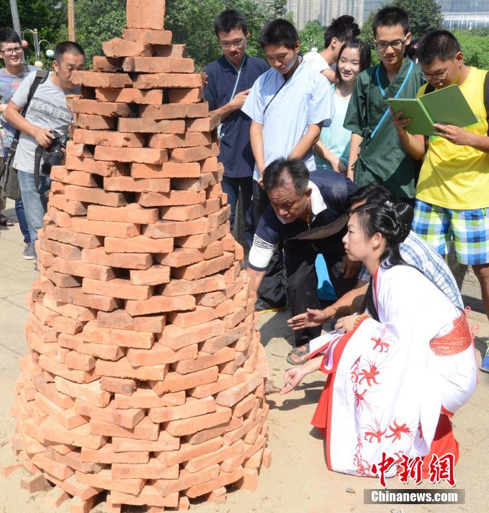 9月7日,以“古村摆塔、闽韵仲秋”为主题的中秋民俗活动在福州仓山“千年古村” 林浦村泰山宫点将台举行。活动现场,当地民众以豆蒿引火,送至事先用砖块和瓦片搭建而成的“品”字形塔口前,顿时该塔成为金光四射的的宝塔。据介绍,烧塔习俗是福州悠久的中秋摆塔习俗的一个重要组成部分,象征着生活红红火火、幸福美满。刘可耕 摄