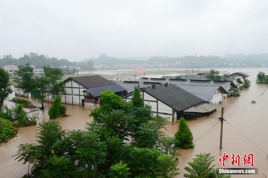 9月13日,四川大竹二郎乡江水坝洪灾现场。13日凌晨开始的暴雨天气已致大竹5人失踪。截至目前,此次四川暴雨洪灾已造成全省6市17县34.8万人受灾,因灾转移近7000人,死亡2人,倒塌房屋2000间,直接经济损失6.4亿元人民币。 中新社发 钟欣 摄