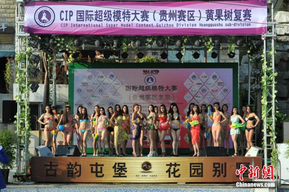 9月15日,2014CIP国际超模大赛贵州赛区复赛落下帷幕,20名海内外佳丽晋级半决赛。复赛分两场进行,选手们13日在屯堡酒店进行泳池比基尼展演,14日在黄果树大瀑布景区房车营地进行实地采风。在复赛和总决赛期间,参赛选手还将深入贵州省黔西县举行送文具下乡活动、慰问环卫工人等活动。此外,进入半决赛的选手将获得参加贵阳首次“花车巡游”环城游行的机会,最终参加10月24日进行的决赛。罗禹 摄