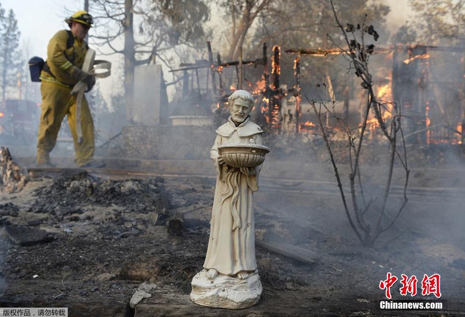 当地时间2014年9月15日,美国加州,山火肆虐导致过火面积超过3000英亩,多户家庭被迫撤离。