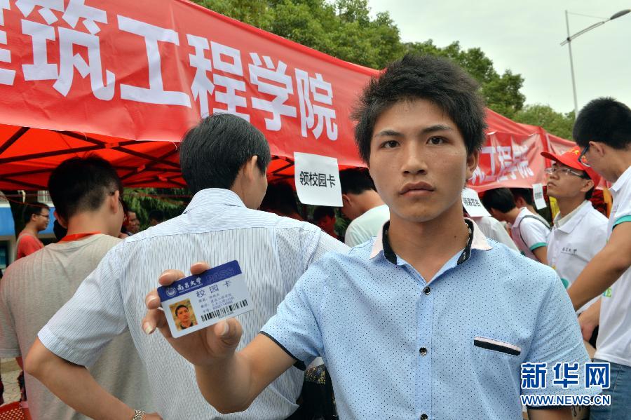 9月3日,柳艳兵展示刚领到的南昌大学校园卡。新华社记者宋振平摄