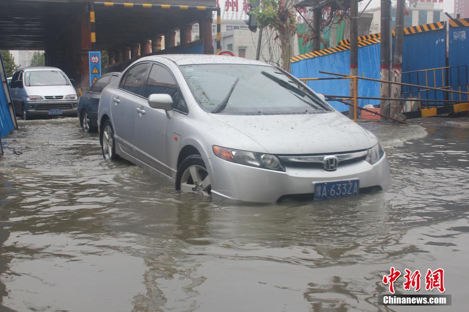 9月16日,河南各地连绵的阴雨依旧未能消停,诸多城市道路出现不同程度积水,驾车出行的市民无奈逆水前行,放慢速度的车辆仿佛在“水路”上游泳。不绝的秋雨令网友直呼:“白素贞,住手吧……许仙真的不在河南住。”图为郑州陇海路与交通路交叉口,积水已淹没车辆半个轮胎。马义恒 摄