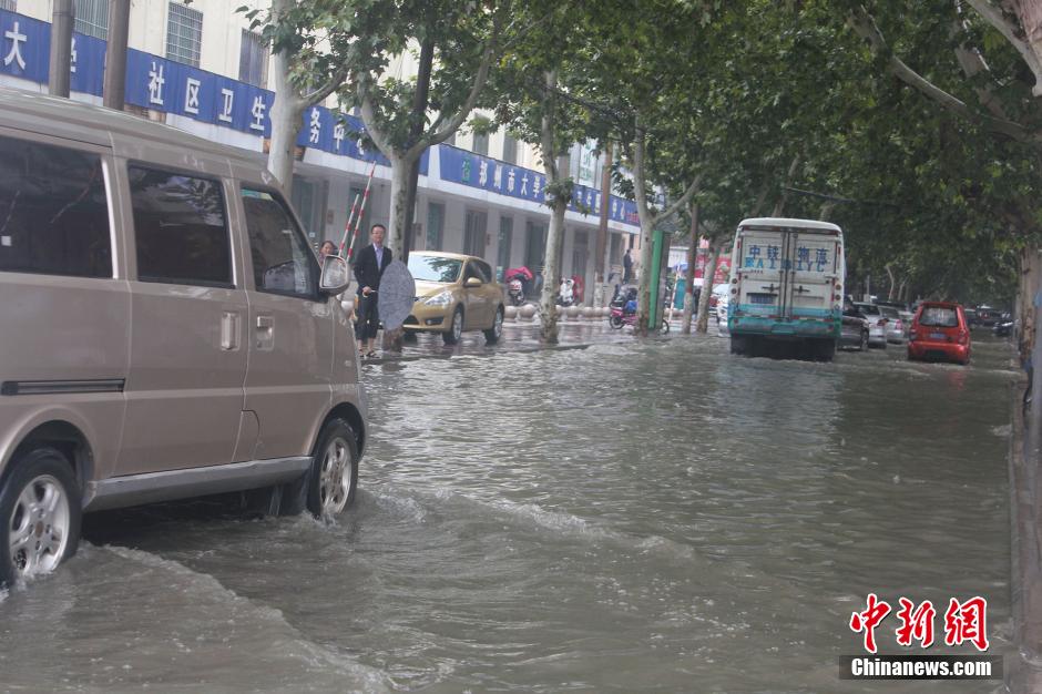 9月16日,河南各地连绵的阴雨依旧未能消停,诸多城市道路出现不同程度积水,驾车出行的市民无奈逆水前行,放慢速度的车辆仿佛在“水路”上游泳。不绝的秋雨令网友直呼:“白素贞,住手吧……许仙真的不在河南住。”图为郑州交通路化身为一条河道,众多无奈下水“慢游”。 马义恒 摄