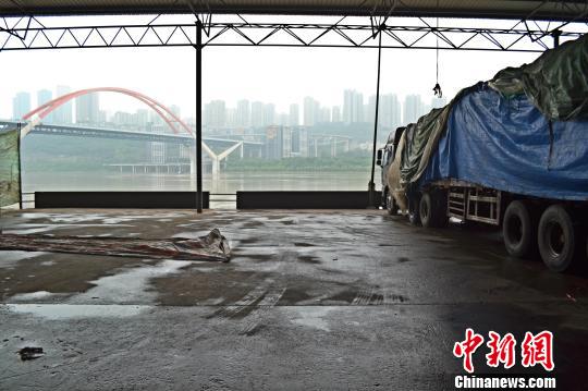 继15日重庆主城遇今年最大洪峰后,重庆菜园坝沿江的木材市场、水果批发市场于16日陆续恢复工作。木材市场的工作人员将货物陆续搬回原因洪水而关闭的仓库、门市内,并将部分潮湿木材进行擦拭、晾晒。水果批发市场内原被全部淹没的大货车停车厂已恢复正常运输,约20辆货车陆续停靠于江边卸运水果筐等货物。