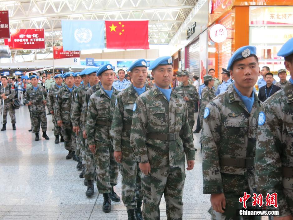 9月16日下午,沈阳军区在吉林省长春市龙嘉国际机场举行仪式,欢送中国第二批赴马里维和部队先遣分队官兵出征。190名官兵飞赴位于非洲西部的马里共和国,接替执行维和任务期满的首批维和部队官兵。这标志着中国赴马里维和部队开始进行首次轮换。图为中国第二批赴马里维和部队第一梯队官兵准备登机出征。中新社发 李祥辉 摄