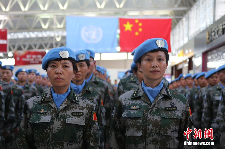 9月16日下午,沈阳军区在吉林省长春市龙嘉国际机场举行仪式,欢送中国第二批赴马里维和部队先遣分队官兵出征。190名官兵飞赴位于非洲西部的马里共和国,接替执行维和任务期满的首批维和部队官兵。这标志着中国赴马里维和部队开始进行首次轮换。中新社发 李祥辉 摄