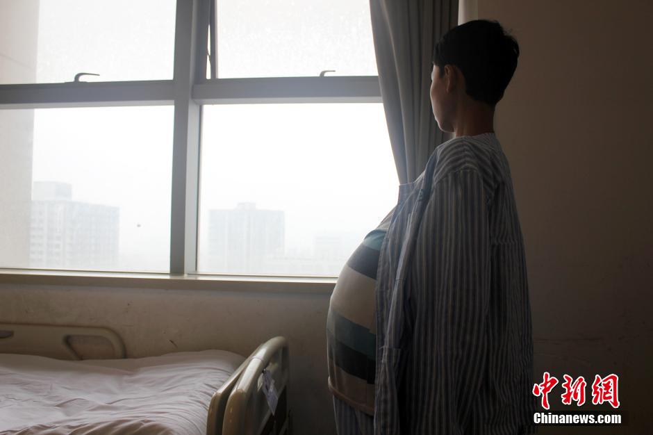 “我想和正常人一样生活,我还想开一家电子维修店,赚钱照顾家人。”17岁的杨龙凯用略带哭腔的声音表达自己的愿望。图为杨龙凯一个人站在窗边眺望远方,或许是受大肚子影响,他显得有些自闭,“我就是想做一个普通人。”杨龙凯说。 马义恒 摄