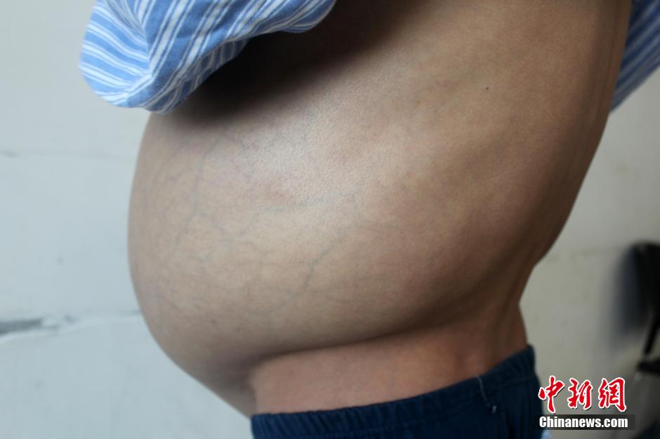 图为杨龙凯硕大的肚子与纤细的腰围相比显得十分突兀。 马义恒 摄