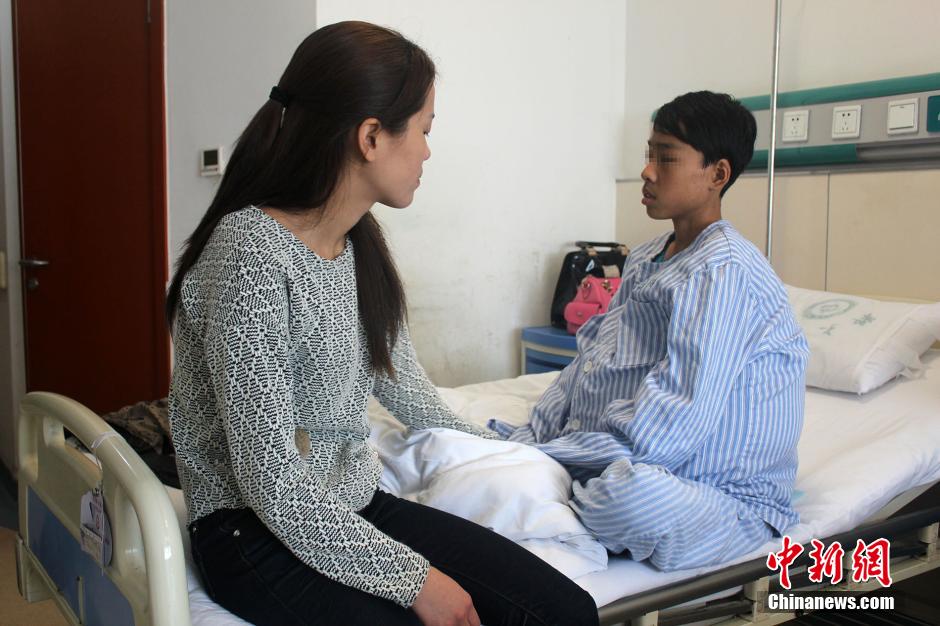 图为姐姐杨姣十分疼惜弟弟,她发誓要竭尽全力让弟弟摆脱大肚子,延续生命。 马义恒 摄