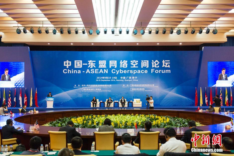 9月18日下午,首届中国—东盟网络空间论坛在广西南宁开幕。中央网络安全和信息化领导小组办公室主任、国家互联网信息办公室主任鲁炜出席论坛开幕式并发表主旨演讲,中共广西壮族自治区委员会书记彭清华出席并致辞,缅甸通信与信息技术部部长吴妙亨出席并发表主旨演讲。图为开幕式现场。洪坚鹏 摄
