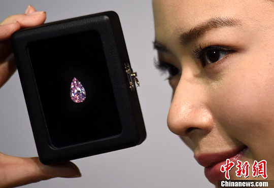 当日,香港苏富比展出瑰丽珠宝及翡翠首饰,该枚紫粉红钻为罕见高净度,估价一亿至一亿两千万港元。此枚美钻在10月7日的拍卖前,将在新加坡、台北、纽约、伦敦、日内瓦巡回展出。
