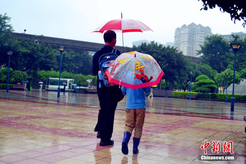 根据重庆市气象局和市水文局监测,9月17日8时至18日7时,重庆巫溪、开县、城口、璧山、云阳、潼南、奉节、合川、丰都、涪陵、荣昌、沙坪坝、铜梁、永川、长寿、北碚、垫江、江津、江北、大足、渝北、梁平、忠县、渝中等24个区县出现暴雨以上天气过程。重庆市防汛抗旱指挥部决定于18日发布暴雨洪灾Ⅳ级蓝色预警信息。在雨势相对较弱的重庆主城内,人们在日常出行中都“全副武装”,使出各自的避雨妙招。其间,却不乏有爱好游泳的体育健儿顶着强降雨坚持锻炼。