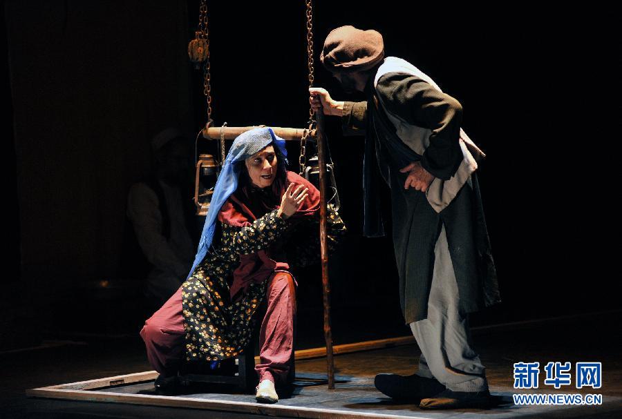 9月9日,演员出演“2014爱丁堡前沿剧展”开幕剧目《喀布尔安魂曲》。新华社发(李晏 摄)