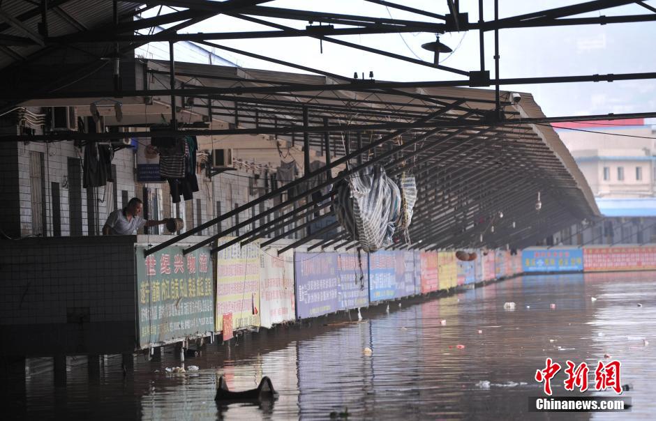 9月19日,重庆一物流市场很多门市都被洪水淹没。受近期强降雨影响,长江重庆段水位迅速上涨,多处出现超警戒水位。图为洪水淹没物流市场门市。陈超 摄