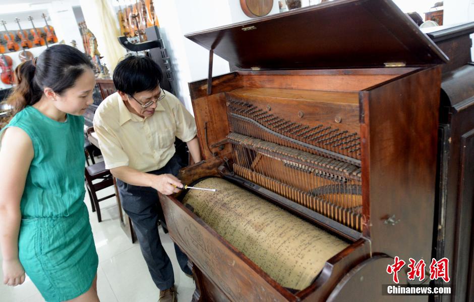 9月19日,一架罕见于120年前英国制造的“投币演奏钢琴”在福州宜天乐器博物馆首都亮相,吸引众多音乐爱好者的眼球。由福建著名乐器专家陈恭先生于2004年创办的福建首家私人乐器博物馆————福州宜天乐器博物馆,共收纳古今中西乐器逾千件。刘可耕 摄