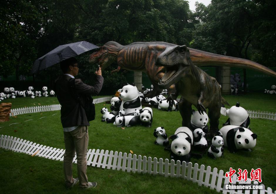 9月19日,为期25天的“珍爱地球,保护动物——1600只大熊猫世界之旅(杭州站)”在杭州西湖新天地启幕,用环保材料制作的“大熊猫”将摆开各种趣味十足的队形。中新社发 李晨韵 摄