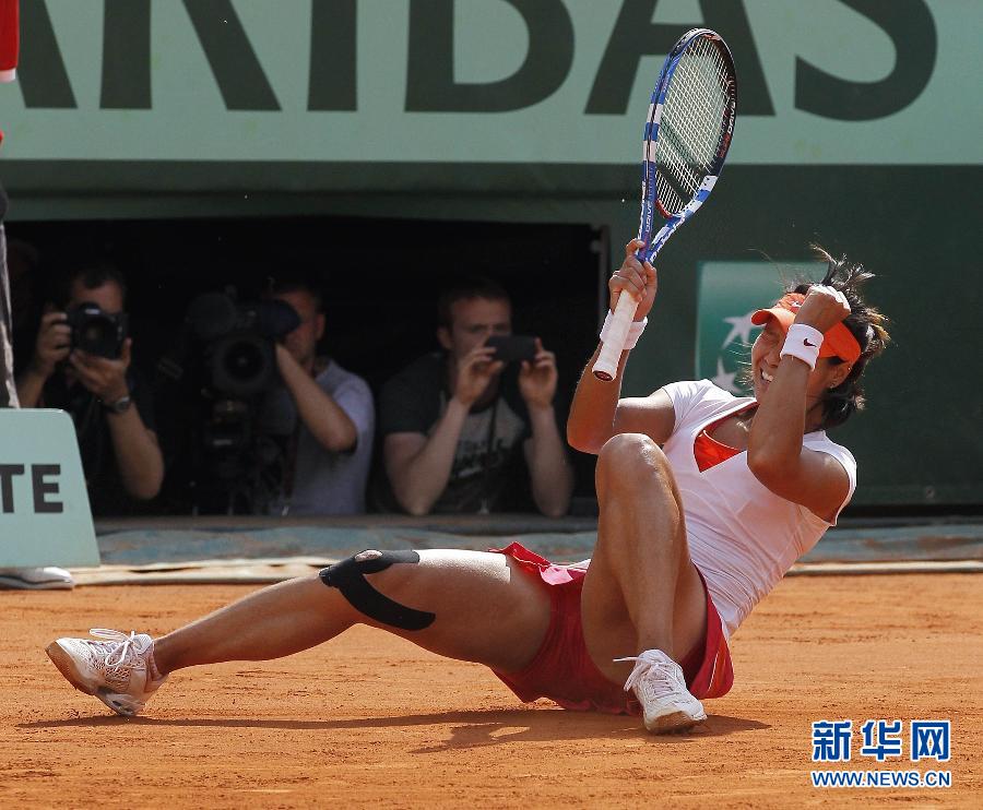 9月19日11时,中国最成功的网球职业球员李娜通过社交网络宣布退役。1999年走上职业化道路后,李娜从低级赛事打到四大满贯,职业生涯中4次晋级大满贯赛事单打决赛,2次夺冠,最高站到WTA女单排行榜第二位,其中最为引人瞩目的是2014年夺得澳大利亚网球公开赛冠军和2011年夺得法国网球公开赛冠军。让我们一起来回顾以下李娜职业生涯的历史性时刻。图为2011年6月4日,中国选手李娜倒地庆祝夺冠。当日,在2011年法国网球公开赛女单决赛中,李娜以2比0战胜意大利选手斯齐亚沃尼,夺得冠军。这是中国、也是亚洲选手第一次夺得大满贯女单冠军。新华社发