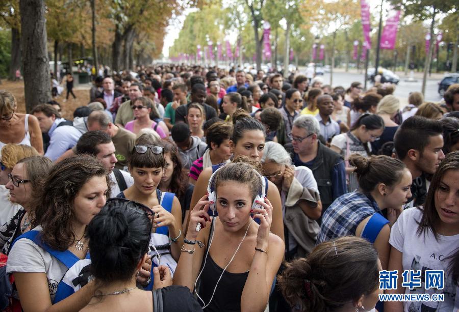 9月20日,游客在巴黎香舍丽榭大街排队,等待进入爱丽舍宫参观。当日,法国迎来第31届欧洲文化遗产日。本届遗产日为期两天,期间公立博物馆免费参观,私立博物馆门票减价。此外,法国总统府、总理府、国民议会、外交部、国宾馆、巴黎市政厅等同时对观众免费开放。新华社记者陈晓伟摄