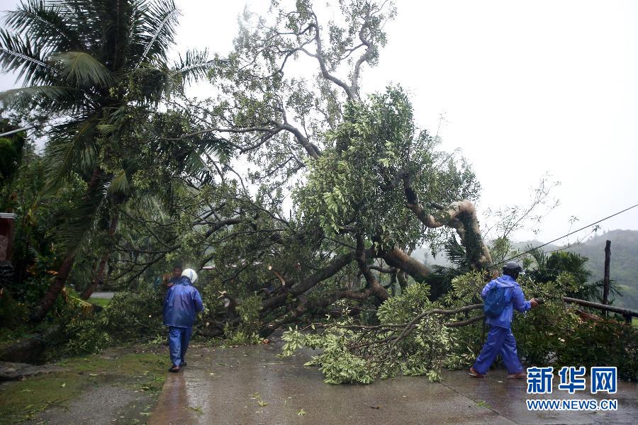 9月20日,在菲律宾北伊罗戈省,人们处理被风雨刮倒的树。菲律宾国家减灾委员会20日说,台风“凤凰”来袭,目前已造成至少7人死亡、6人受伤,受灾人口达50多万。 新华社发(乌马利摄)